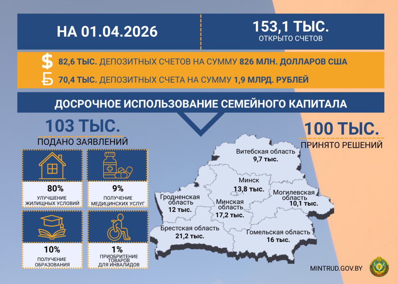 Для многодетных семей открыто 153,1 тыс. депозитных счетов «Семейный капитал»: